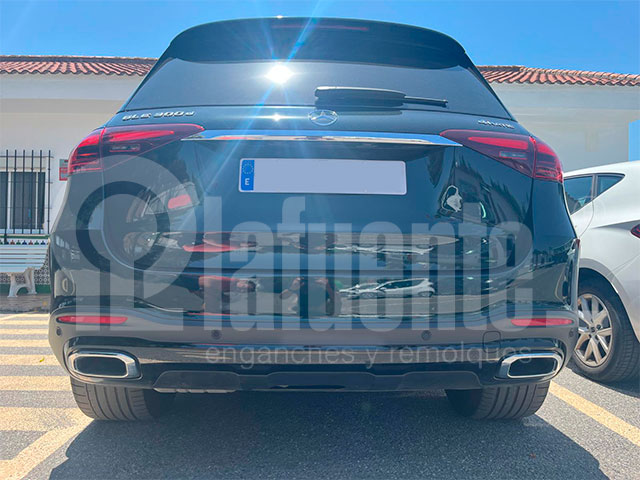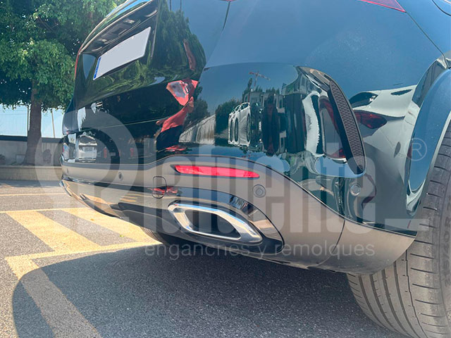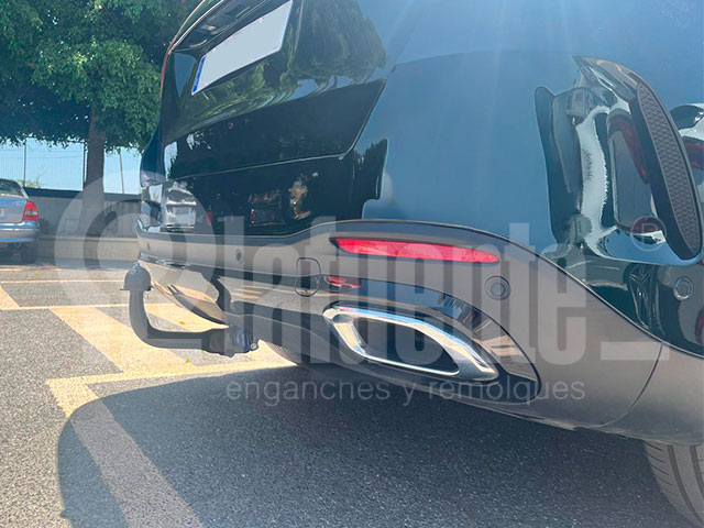 Il est très facile et intuitif de le démonter verticalement vers le bas, de sorte que lorsqu'il n'est pas utilisé, il peut être retiré MERCEDES GLE On dirait qu'il n'a pas d'attelage. Il est fourni avec un sac pour ranger la rotule, les gants, le Cache-bague d'attelage et le cache-rotule. Équipé d'une clé antivol.