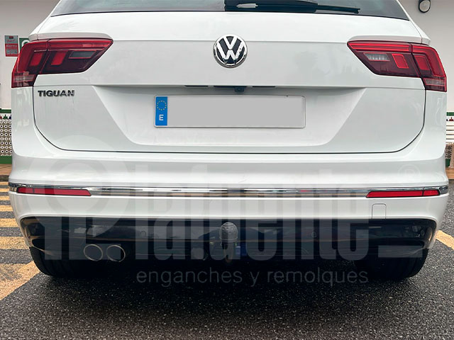 Il est très facile et intuitif de le démonter verticalement vers le bas, de sorte que lorsqu'il n'est pas utilisé, il peut être retiré VOLKSWAGEN Tiguan On dirait qu'il n'a pas d'attelage. Il est fourni avec un sac pour ranger la rotule, les gants, le Cache-bague d'attelage et le cache-rotule. Équipé d'une clé antivol.